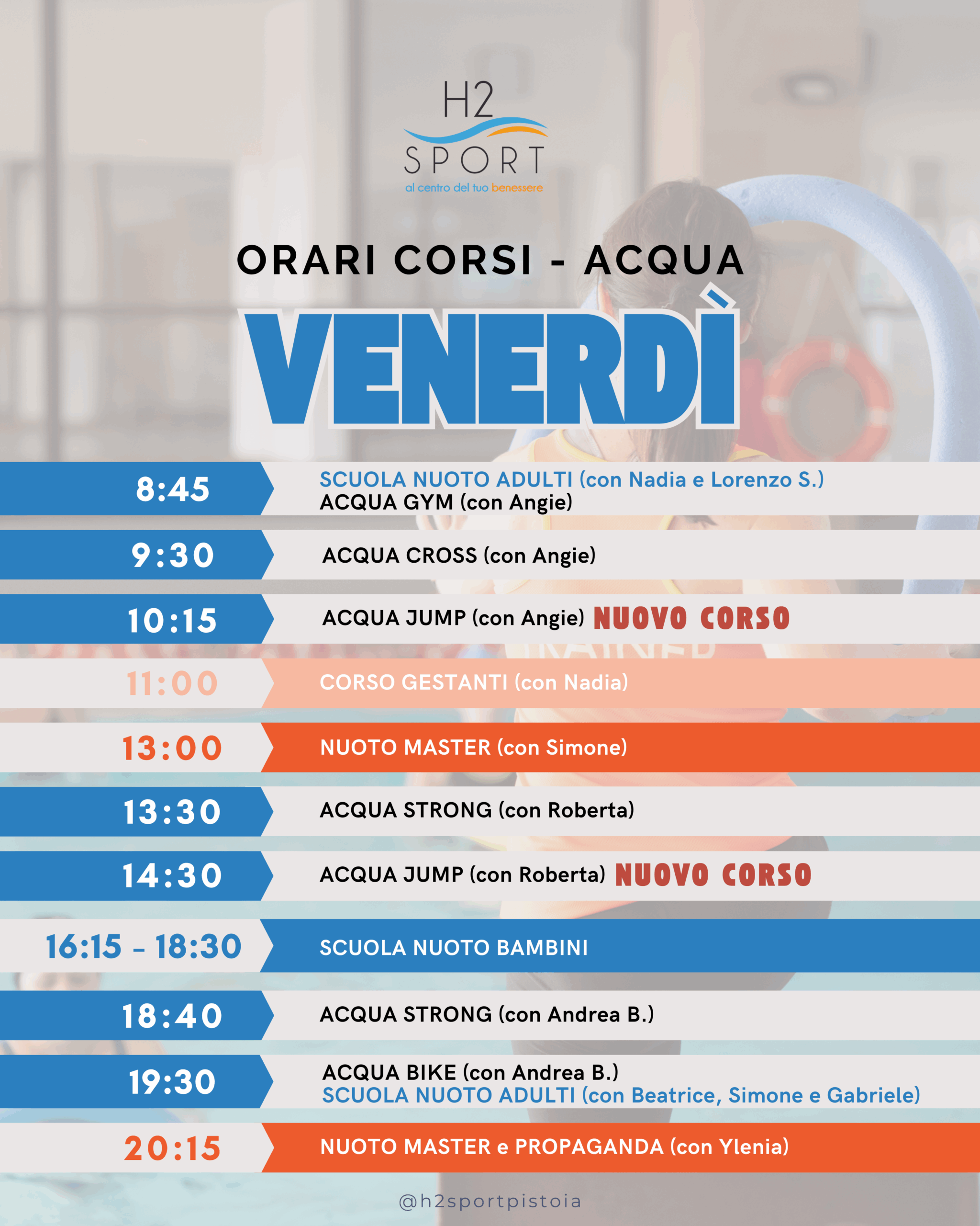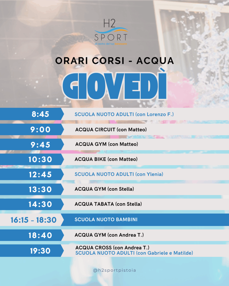 Il nostro corso di fitness in acqua è pensato per chi desidera migliorare la forma fisica in modo sicuro e divertente. Grazie alla resistenza dell’acqua, potrai tonificare i muscoli, migliorare la resistenza cardiovascolare e bruciare calorie senza sovraccaricare le articolazioni. Perfetto per tutte le età e livelli di allenamento, l’acqua fitness è un modo efficace per mantenerti in forma. Se stai cercando un corso di ginnastica in acqua o aquagym, il nostro programma ti aiuterà a raggiungere i tuoi obiettivi di benessere e forma fisica in un ambiente stimolante e rilassante.
